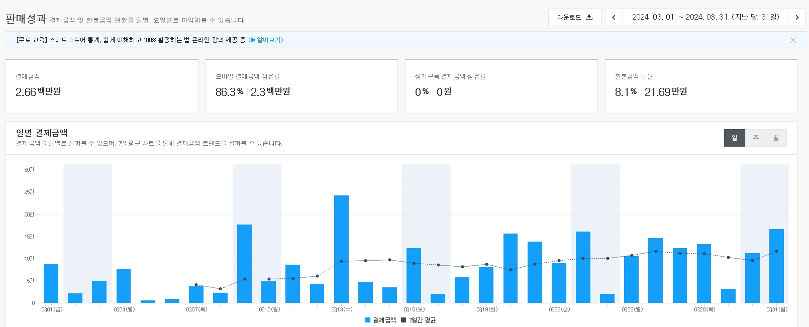 24.04월 18일까지 매출 : 2,648,120원 + 대량주문용 별도 입금 매출 1,686,200원 = 총 4,334,320원